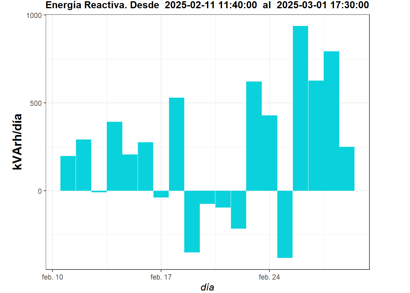 • Se observó una potencia reactiva de 63.49 kVAr inyectada a la red, lo que indica que se llegan a tener factores de potencia en adelanto y que los bancos de capacitores existentes no están operando correctamente.